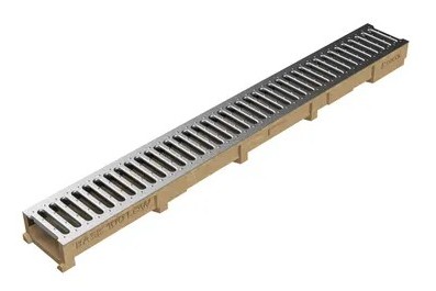 Afvoergeul polyesterbeton + rooster 1m - hoogte 6cm (Coeck)