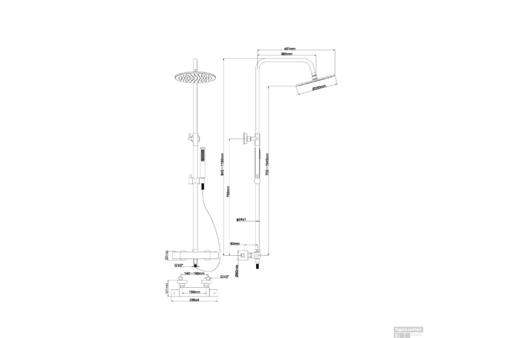 verstelbaar op de door jou gewenste hoogte. De hoogte van de douchestang kan bij de installatie geregeld worden tussen de