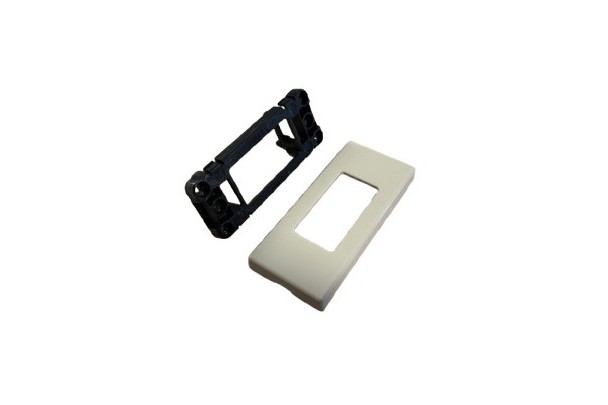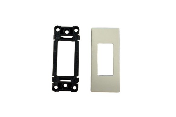 Inbouwplaat en afwerkingsplaatje voor de Vimar wipschakelaar met vast nulpunt in het kleur crèmewit.