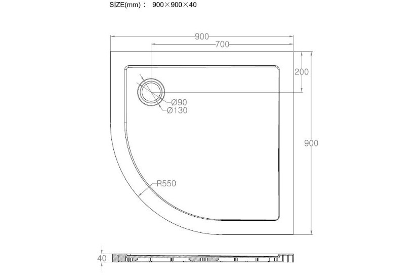 T10. Douchebak SMC 1/4 rond 90cm x 90cm x 4mm