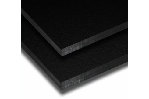 Deze plaat is 6mm dik en heeft een gladde toplaag met een zijdeglans afwerking in het zwart (RAL 9005). Beide zijden van de